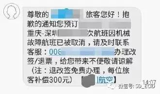 第一:验证信息真伪。拨打航空公司官方电话核实情况,不要拨打短信中的电话号码,或者直接登陆正规订票APP进行查询。航空公司飞机因故不能起飞,也会给订票客户发送短消息,但不会让客户通过网银、支付宝等方式进行任何涉及钱款的交易。