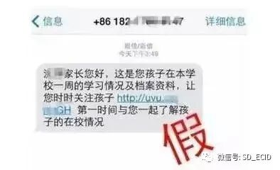 5. 查看孩子体验结果:xx家长您好,这是您孩子本学年的体检结果,请家长关注。(附诈骗网站链接)
