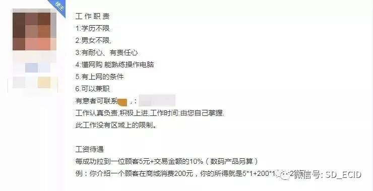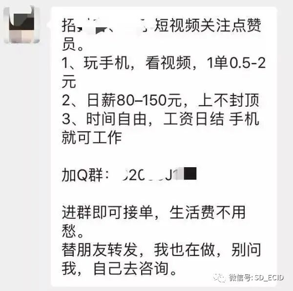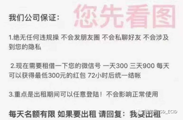 所以,大家切记,在找兼职的过程中看到任何类似“租售微信”“出租QQ号”“借用身份证”等信息都要提高警惕,不要被一些蝇头小利所迷惑。