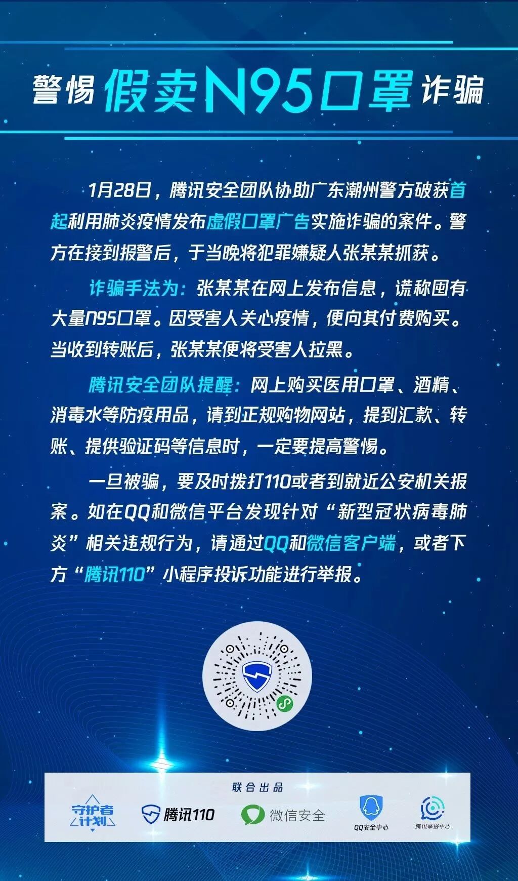 但诈骗套路层出不穷,我们也提醒大家,购买口罩、酒精、消毒水等防疫用品,一定要通过药店等正规渠道,确保产品质量和资金安全。另外涉及个人信息填写时也需慎重,不向陌生人提供身份证信息、银行账户、手机验证码等。