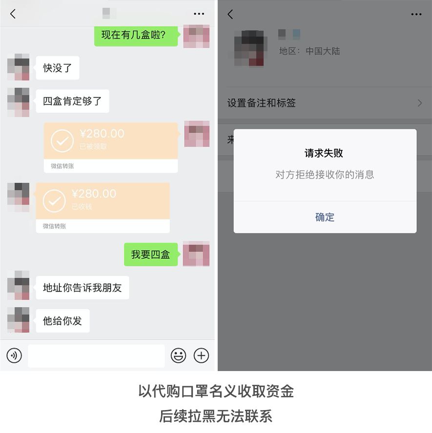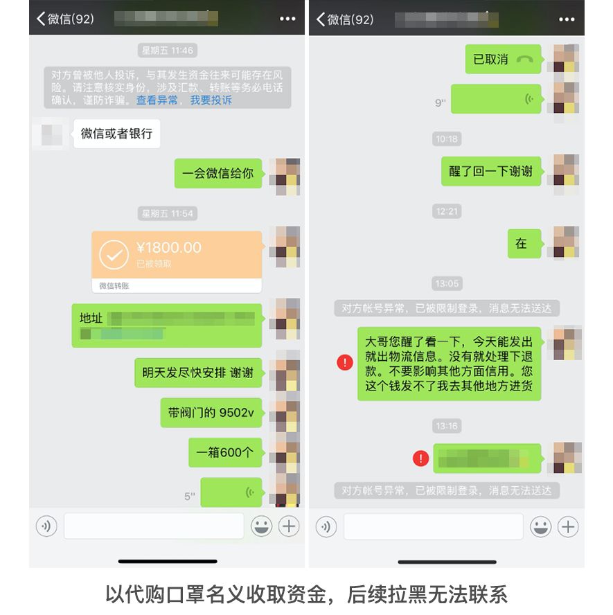 然而,一些不法分子却趁火打劫,散播谣言、假借疫情名义行骗。我们整理了几种诈骗“套路”,大家擦亮眼睛,避免上当:在口罩成为急需用品的时候,有的不法分子以代购、进货、低价批发口罩的名义诈骗,或通过其他平台诱导大家到微信进行付款,有的在收款后提供虚假快递单号,或寄出与口罩无关的物品,骗取大家的信任和钱财,然后拉黑导致无法联系。