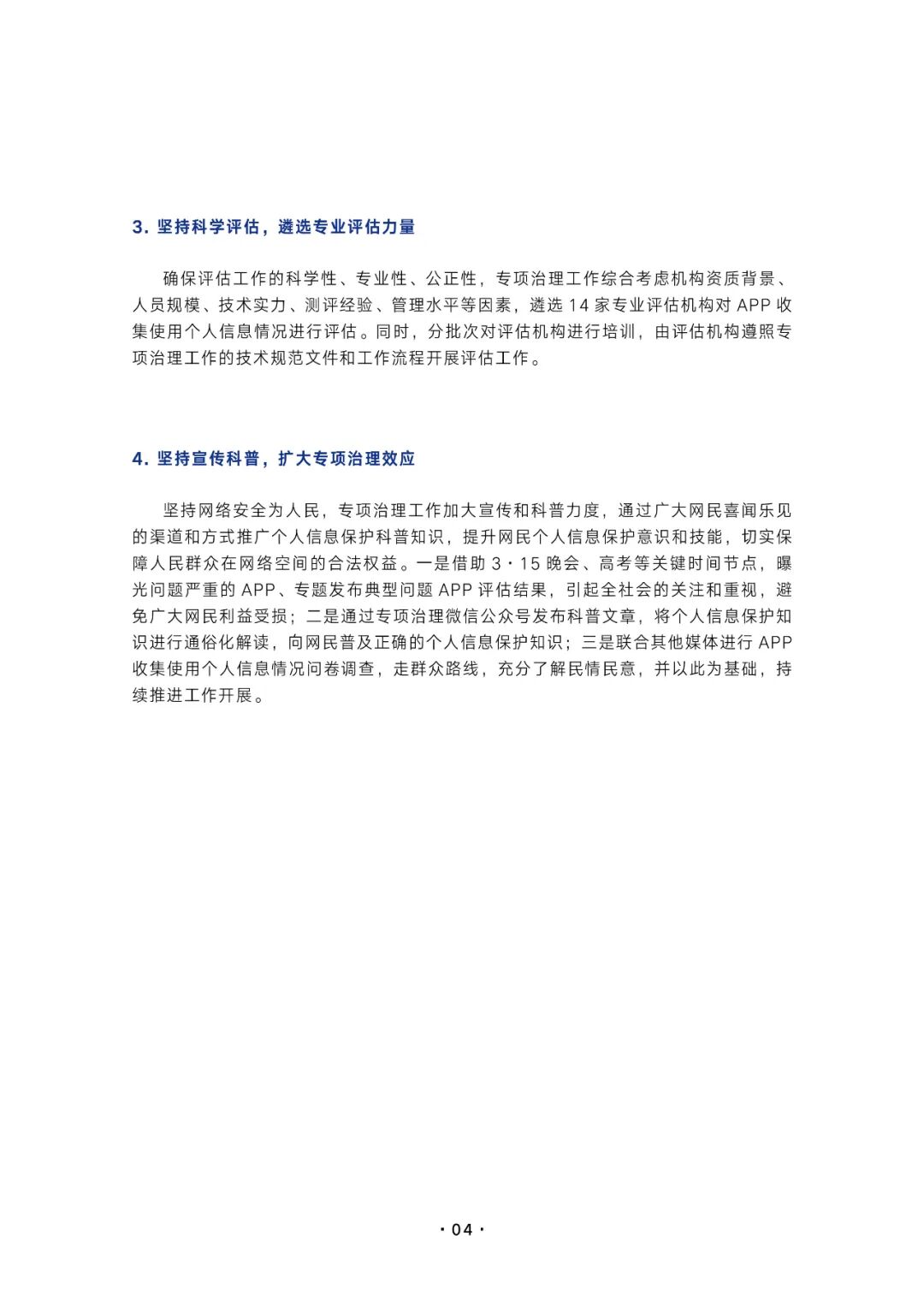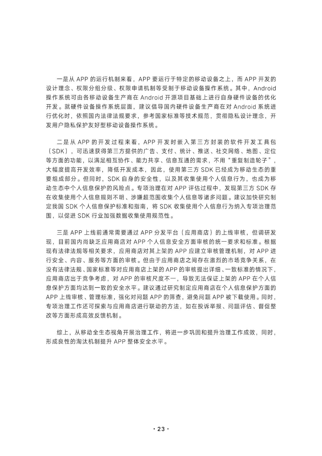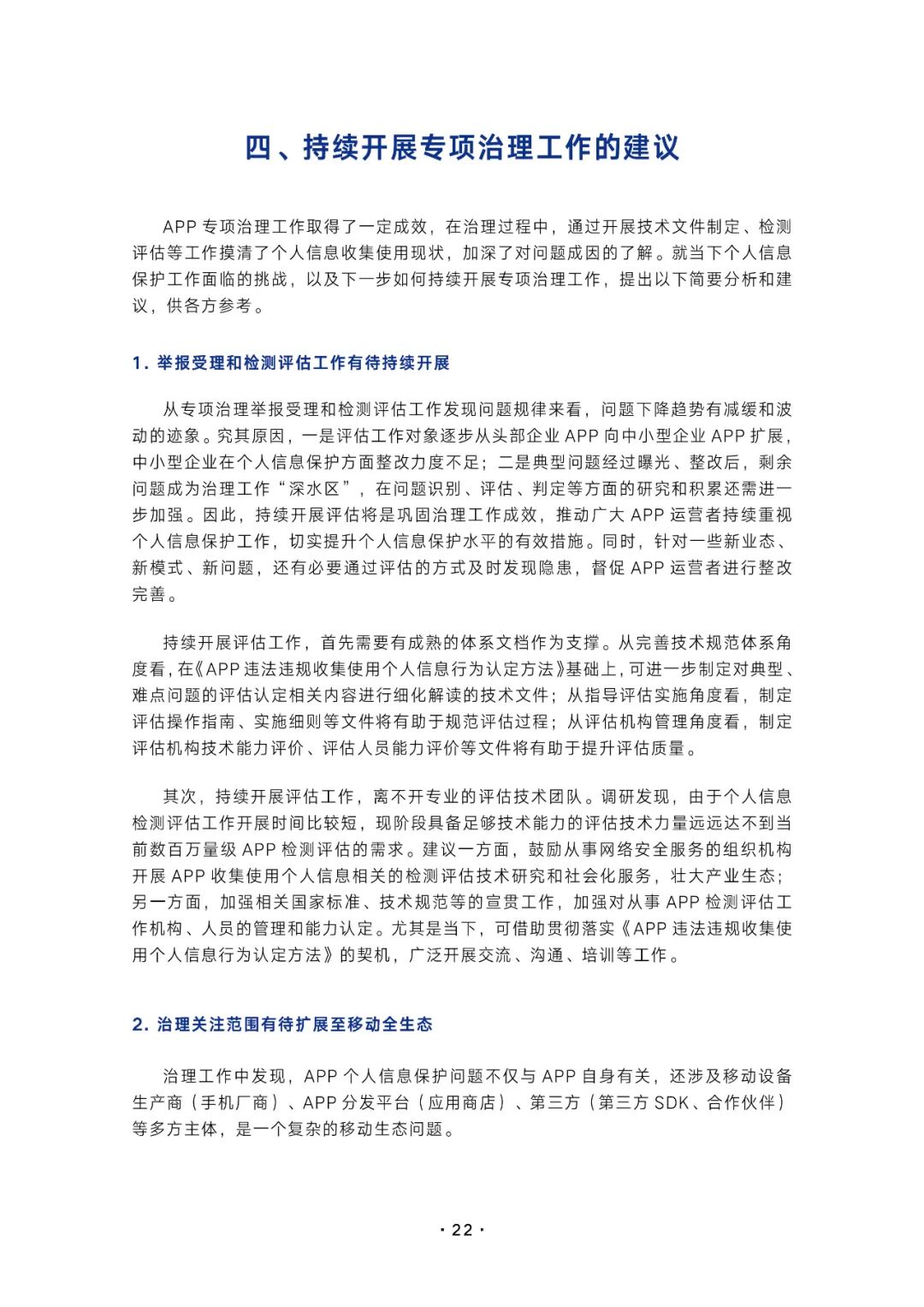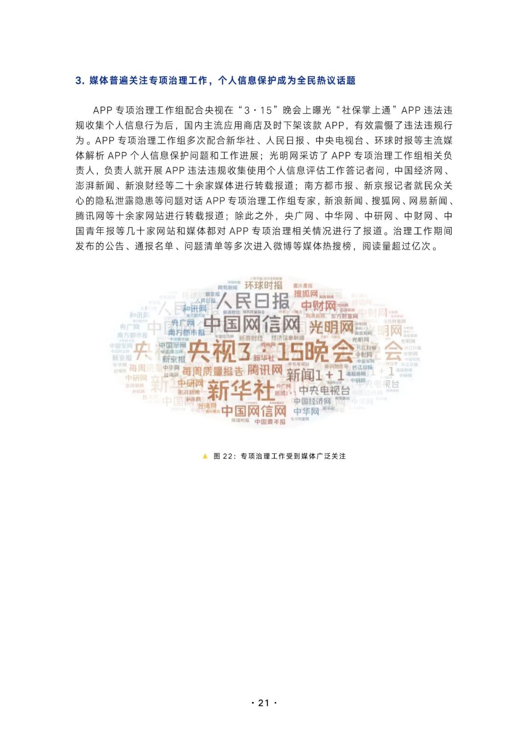 2019年1月,中央网信办、工业和信息化部、公安部、市场监管总局四部门联合发布《关于开展APP违法违规收集使用个人信息专项治理的公告》,在全国范围组织开展APP违法违规收集使用个人信息专项治理,并成立APP违法违规收集使用个人信息专项治理工作组。一年来,专项治理工作成效显著,《APP违法违规收集使用个人信息行为认定方法》《个人信息安全规范》等标准规范相继出台完善,用户规模大、与生活关系密切、问题反映集中的千余款APP经深度评估后进行了有效整改,无隐私政策、强制索权、无注销渠道等问题明显改善,APP运营者履行个人信息保护责任义务的能力和水平明显提升,全社会关注和重视个人信息安全的氛围基本形成。